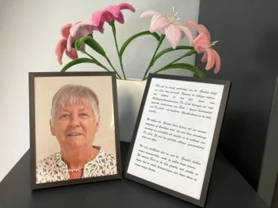 Onze zus was de kalmte zelf. Ze kon uitzonderlijk goed luisteren en gaf wijze, doordachte raad. Haar steun en zorg voor ons, en in het bijzonder voor onze mama, waren enorm en het gemis is immens .